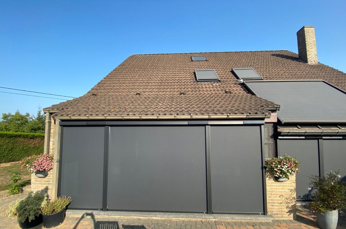 Installation d’une pergola vitrée avec parois coulissantes vitrées et store de véranda Voir les photos
